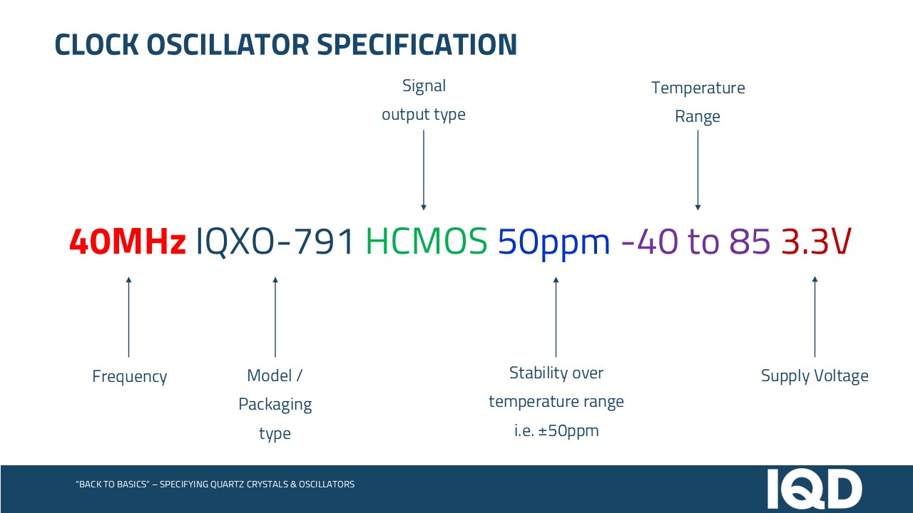 Clock oscillators are the most technically simple oscillator IQD offer, the package contains a quartz wafer and also the necessary circuit to make the quartz resonate. Consequently, by applying the correct power supply to the device a stable output clock waveform is provided at the output pin. IQD’s clock oscillator part numbers all contain the code SPXO. SPXO is an acronym for Simple Packaged Crytal Oscillator.